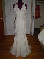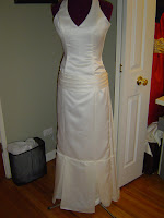 I was in NYC last week for some interviews and by some crazy stroke of good luck the company put me up in a hotel in the garment district. Score! There were fabric shops within steps of my door so I had to check them out, including the famed Mood. One of these holes in the wall had beautiful silk taffeta. I talked them down on price and snapped up 8 yards. My sister then dropped by with her serger for me to borrow. So to sum up that trip, I don't know if I got the job but I left with wedding dress fabric and the nifty serger - a prosperous trip one way or the other!