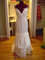 The fit was getting there, the silhouette was slim but not overly emphasizing the wrong things, and the top was close to that Amsale one from the post below. My friend N, who has been my own personal Tim Gunn, was also liking it. But it wasn't "The One." In other words, I wasn't crying with bridal delight when wearing it, as one is supposedly expected to do when it IS "The One." But if I were crying, I'd have a convenient, spacious place to stash the tissues in the top, and that's when I realized the problem with this one. Thus #6 was nixed and left me thinking, is 7 really lucky?