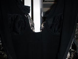And despite my best efforts, I ended up doing a little bit of last minute sewing on the dress the day of the event. Why? Mostly because Victoria's Secret doesn't believe in stocking items for those of us in the first part of the alphabet. So the U-Plunge bra that looked so promising was left unpurchased and forced some ingenuity. I went shopping in my closet instead and ended up sacrificing a bra.With some fashion tape from L I was almost ready to go. The last thing I did was add a hook and eye to the back of the skirt so that I could hike up the train. This h&e is larger than I wanted but it's all I had in the closet and the billowing fabric covered it up anyway. It got the job done and I was so glad to have it; the Ball was packed with people and the rainy Chicago sidewalks were not conducive to sporting a train!