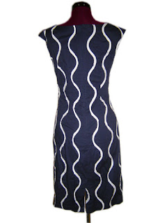 For once I found a shift that fits everywhere; no pulling at the hips in order to fit the waist and no bulge at the waist to fit the hips. Amazing. The stretch in the fabric certainly helped. And just as impressive is the quickness of construction for this one. Cutting and sewing time totaled 4 hours, if that. My only troubles came from a finicky serger, which was used just on the back center seams because of its unpredictable nature. This dress is unlined so I ended up doing french seams on the sides and some bias tape around the back slit.