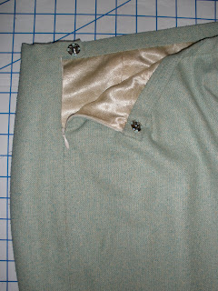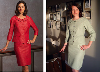 2) The fit of the jacket is spot-on; the skirt is too high-waisted for both my taste and my body. I think a wider, 1-1/2" waist band would give this a younger/more modern appearance (see point 3)