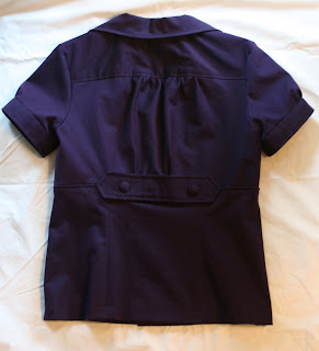 The pattern called for a non-stretch fabric, but I found a deep purple cotton with a bit of stretch in it that I really liked so I decided to try it. Because the jacket is so tailored, there is no need for a stretch fabric, but as I discovered it doesn’t affect the shape. A darker color (or thicker fabric) is necessary because there is no lining for this jacket (which surprised me, but made the construction easier for me).