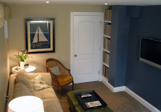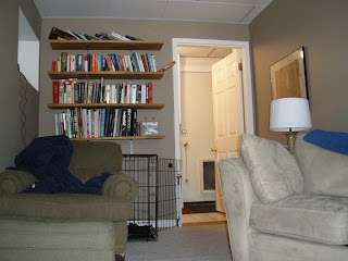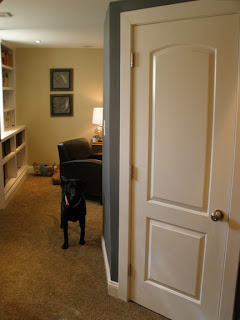 In just two short weeks the room really has become a favored living area; it is most certainly a family room with the hounds back in "their" space. Adding 30 inches to the overall width of the main room may not seem like much but the new square footage makes a HUGE difference. The room now truly functions as a guest room too because the sleeper sofa can be pulled out without having the foot end crash into the wall. It is also much more private than it once was since you must pass through the office area to get to the family room. No more walking down the stairs and instantly catching your sleeping guests off guard! The basement bathroom can now be accessed while those in jammie-jams (The Office this week, anyone?) don't have to display their wares/wears.