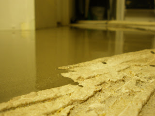 When we tore up the old bathroom we were left with a nasty patch of about 4 layers of concrete laid over who knows how many years. Before new tile could go down this ugliness needed to be leveled out.